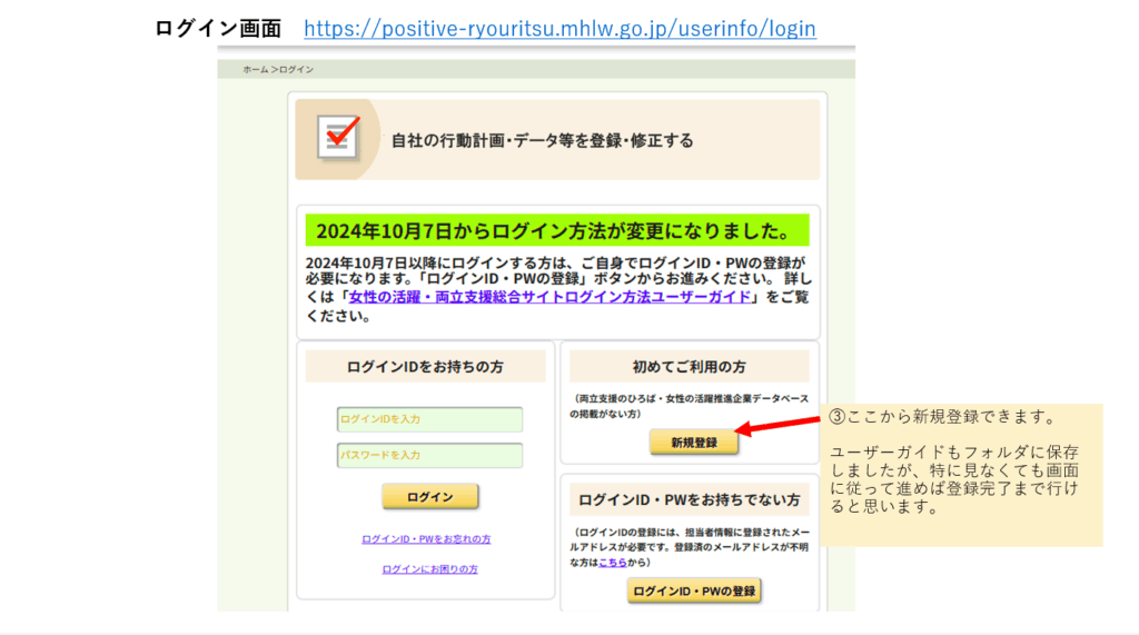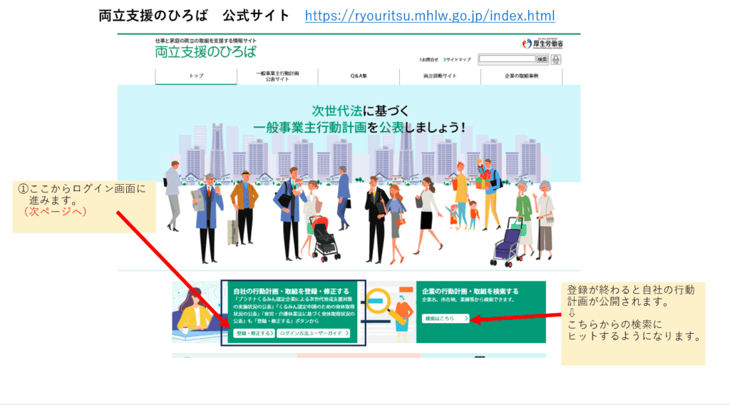 ①「両立支援のひろば」のログインアカウントを作る