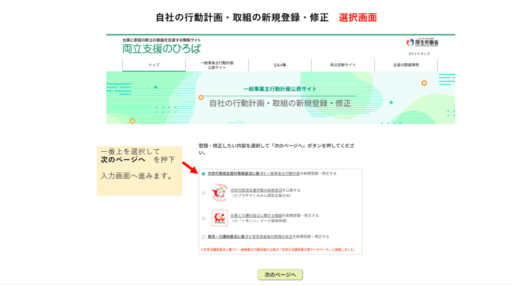 ③「次世代育成支援対策推進法に基づく~」を選択する