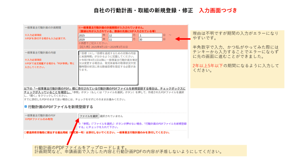 PDF資料(一般事業主行動計画)をアップロードします。